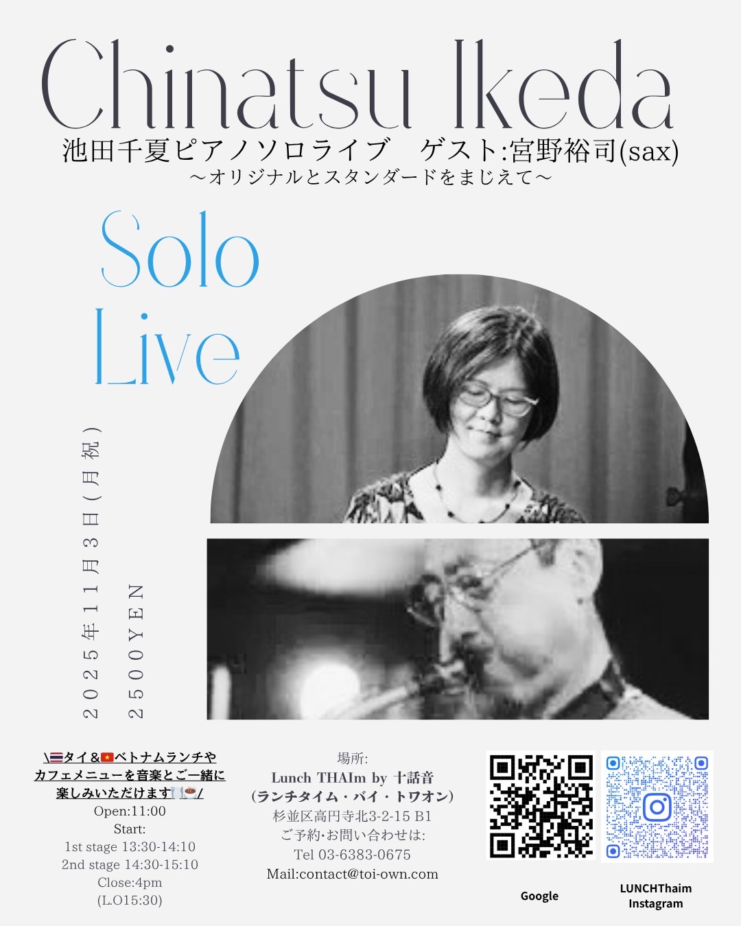 【☀️昼の部 / JAZZ☀️】池田千夏(piano)SOLO LIVE