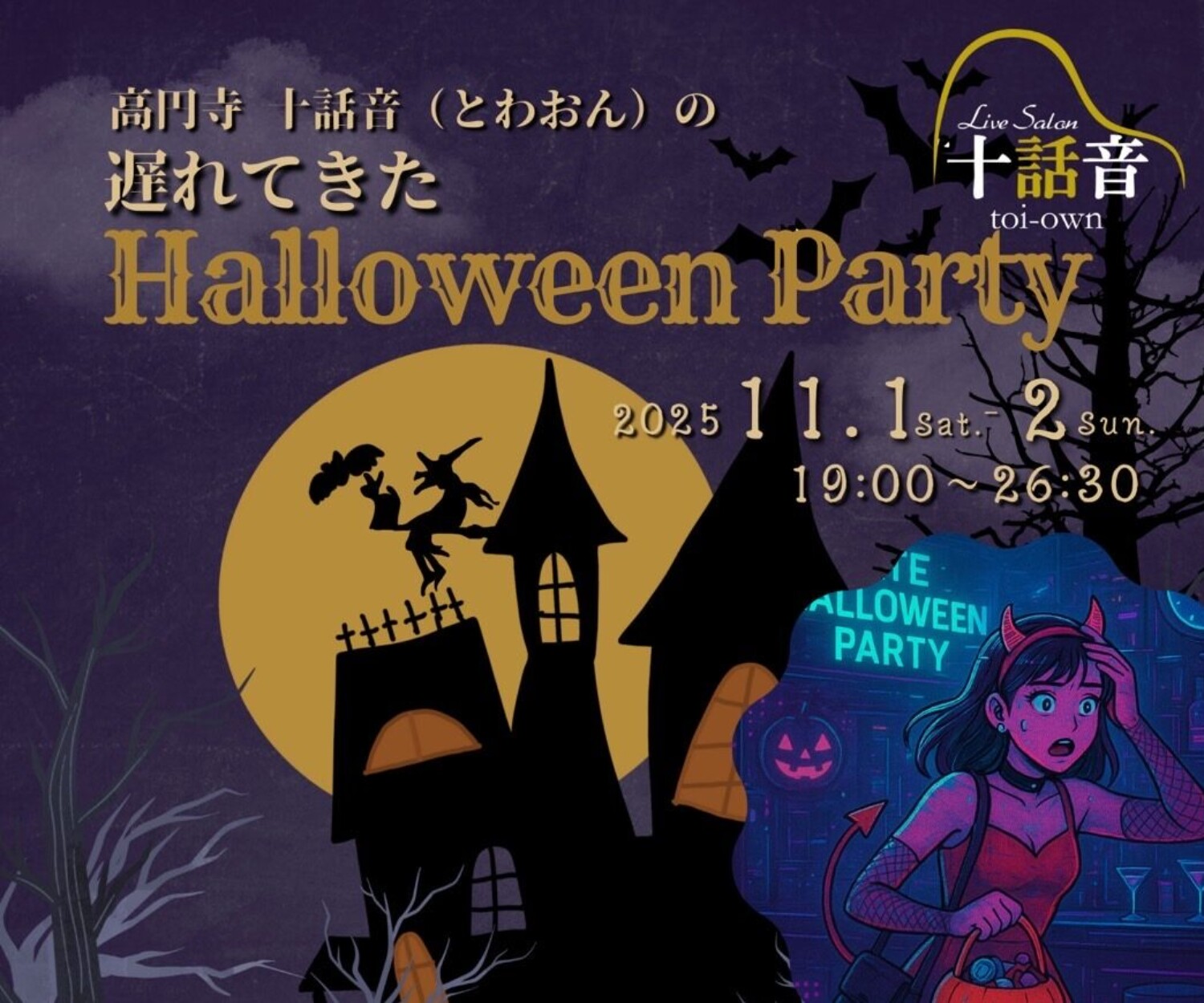all, Live 23 9月 2025 2025.11.01.SAT&02.SUN🦇高円寺 十話音の、遅れてきたHalloween Party🎃 【Title】 高円寺 十話音の、 🦇遅れてきた Halloween Party🎃 【Date】 2025.11.01.SAT & 02.SUN 19:00〜26:30 【charge】 500円 仮装し忘れてても間に合いますし、普段から仮装している方でも良いですし、 初めての仮装もお待ちしております!!! (仮装してなくても、良いのです) 十話音toi-own