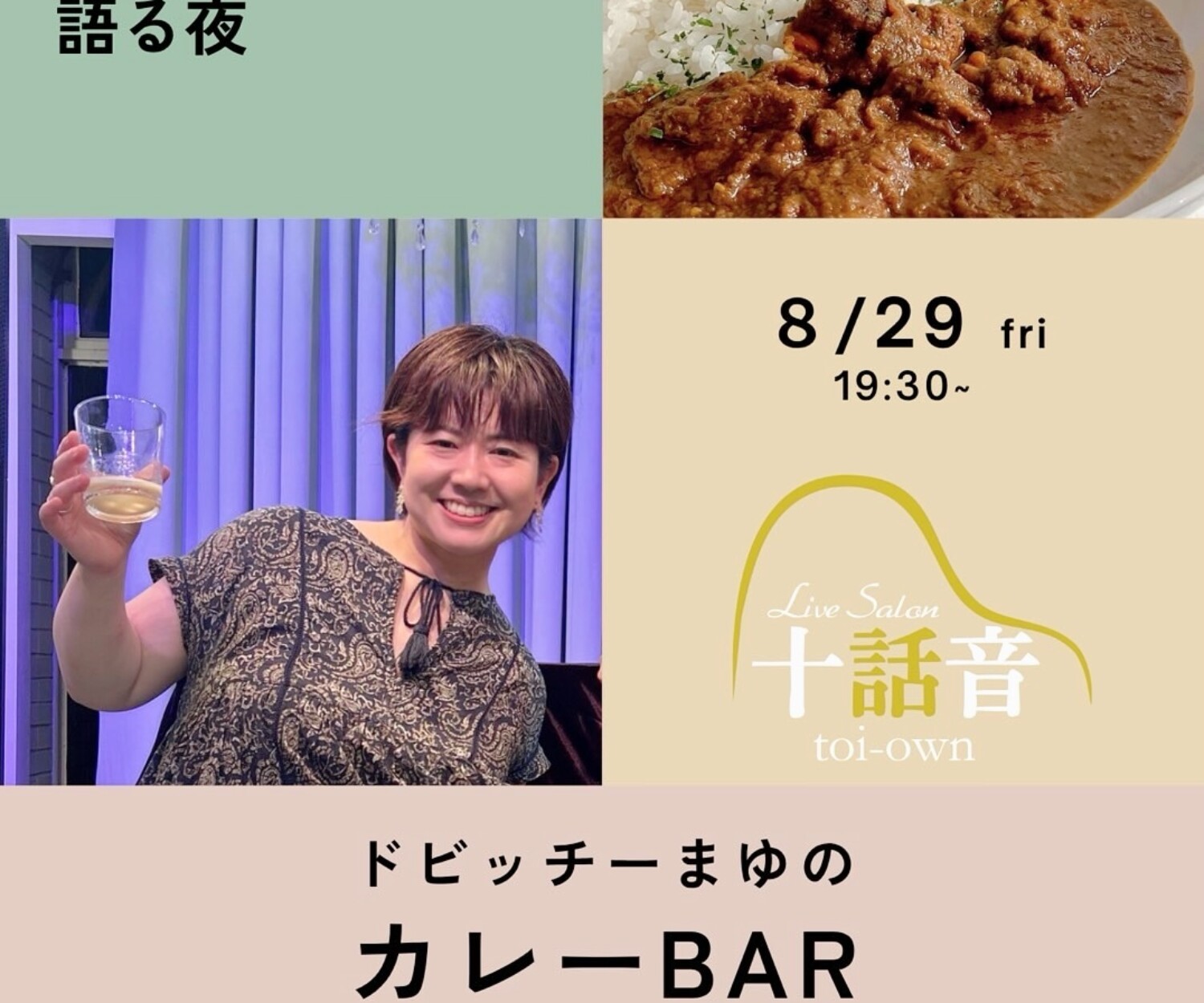 all 14 8月 2025 2025.08.29.FRI🍛ドビッチーまゆの、カレーBAR🍛 【Title】 🍛ドビッチーまゆの、カレーBAR🍛 【Date】 2025.08.29.FRI open/start 19:30~ 【Charge】 500円+order 十話音夜のメニューのポークビンダルーはもちろん、他何種類かご用意!! 夏の疲れをスパイシーに癒したい☀️ 十話音toi-own