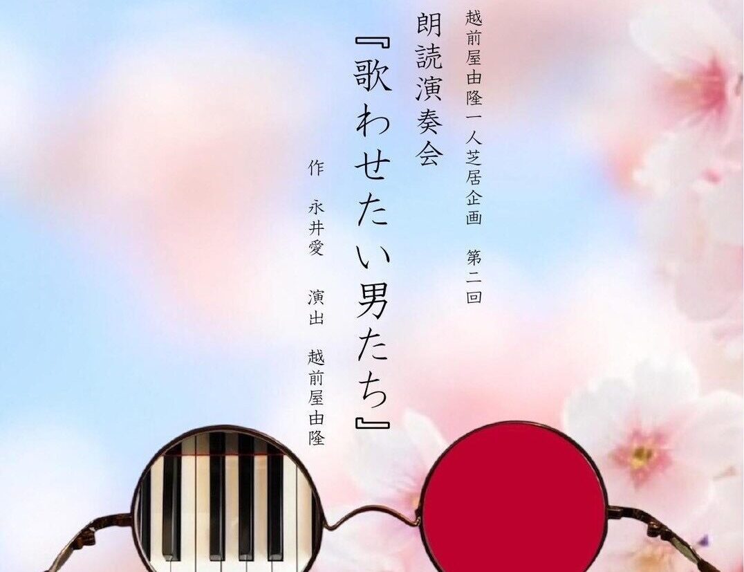 all, Live 27 3月 2026 2026.05.30.SAT【昼夜二回公演】越前屋由隆一人芝居企画 第二回朗読演奏会『歌わせたい男たち』 【Title】越前屋由隆 一人芝居企画 第二回朗読演奏会『歌わせたい男たち』作/永井愛 演出/越前屋由隆 【Date】2026.05.30. SAT[昼の部]開場 12:00 / スタート 13:00[夜の部]開場 17:00 / スタート 18:00(上演時間は1時間45分程を予定しております) 【朗読】越前屋由隆【ピアノ】西原悟【チケット】★全席自由席★一般/3ooo円+order高校生以下/2000円+order 【Venue】十話音 toi-own(とわおん)〒166-0002東京都杉並区高円寺北3丁目2-15珍来ビル B1 十話音toi-own